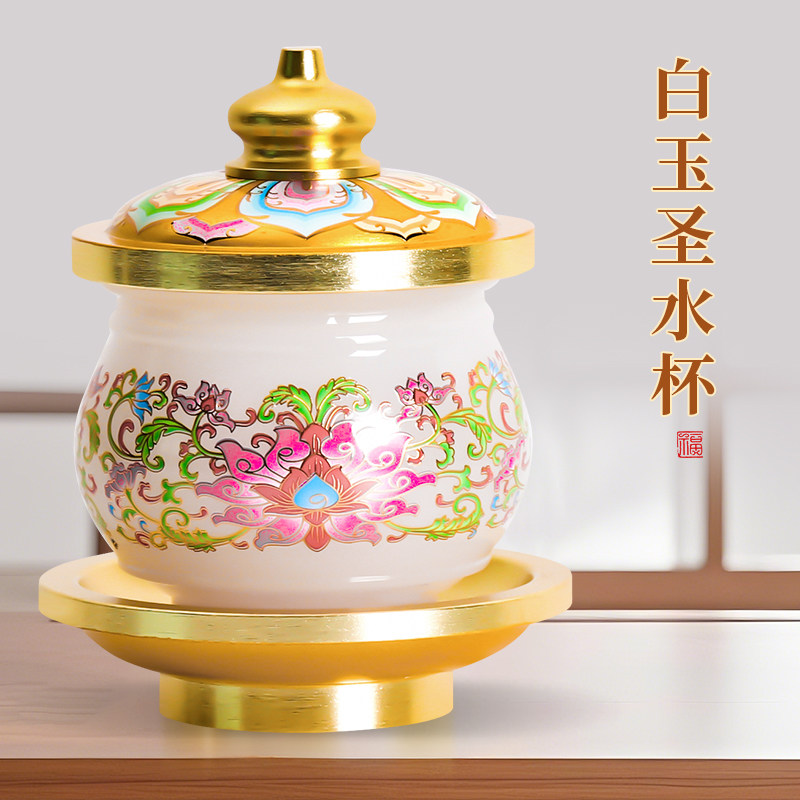 白玉佛前供水杯观音财神爷供奉圣水杯佛堂佛前供奉净水杯佛具摆件