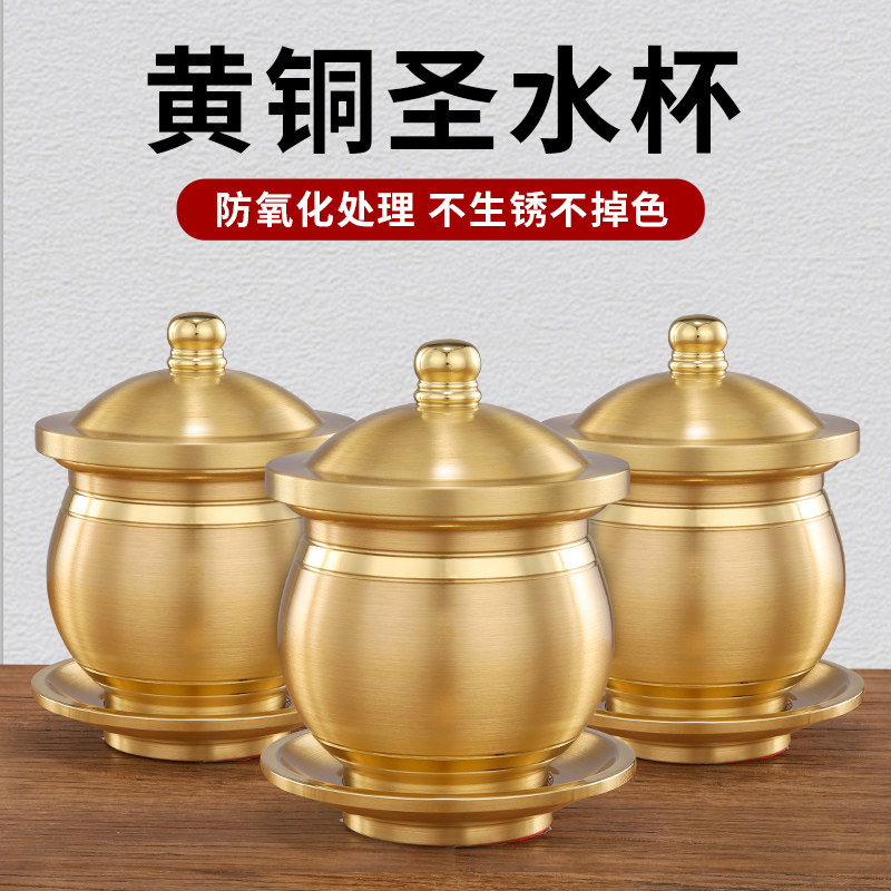 纯黄铜佛前供水杯家用供佛圣水杯观音净水杯佛堂摆件贡杯佛具用品
