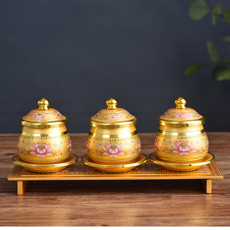 陶瓷沙金供水杯供佛杯财神三连供杯家用佛前贡杯圣水杯观音净水杯