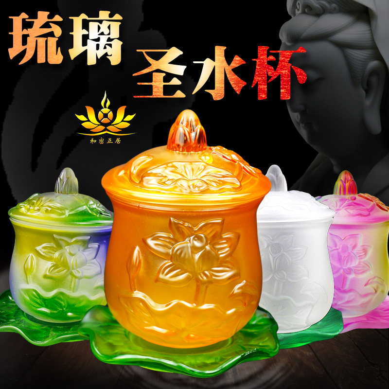 和密正居佛前供水杯琉璃水杯莲花供佛杯七彩水杯圣水杯净水杯茶杯