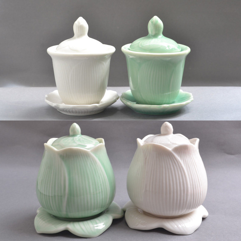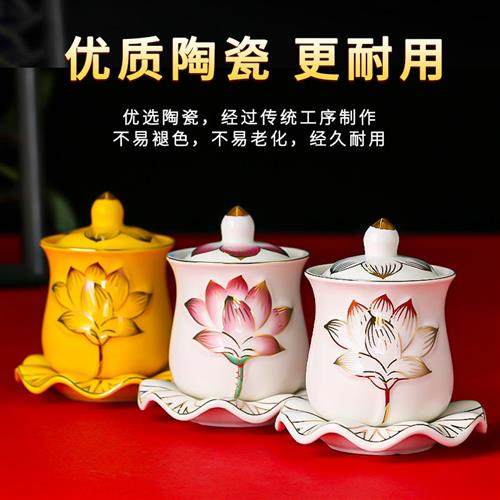 陶瓷供佛水杯莲花杯供杯摆件佛前供水杯净水杯佛堂供奉菩萨圣水杯