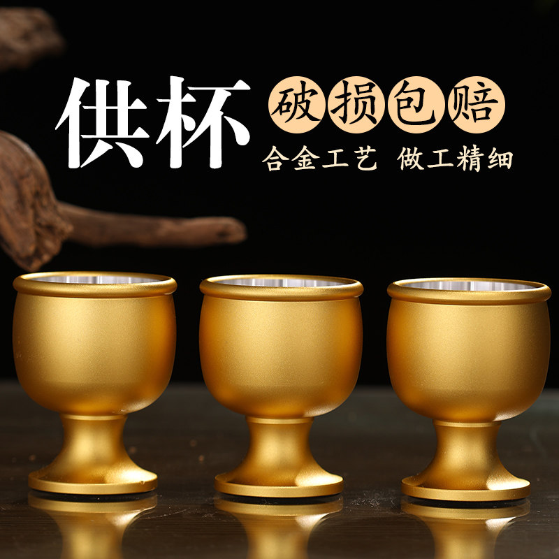 速发紫神阁黄铜佛前供水杯家用供奉财运贡酒杯敬神杯净水杯供佛杯