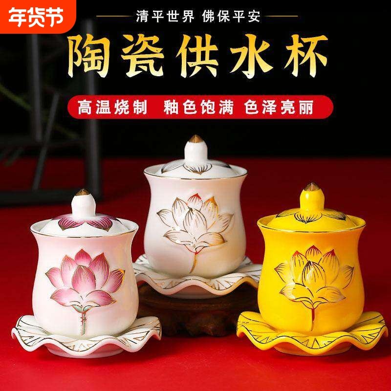 供佛水杯大号家用莲花供水杯观音大悲水供杯陶瓷净水杯佛前圣水杯