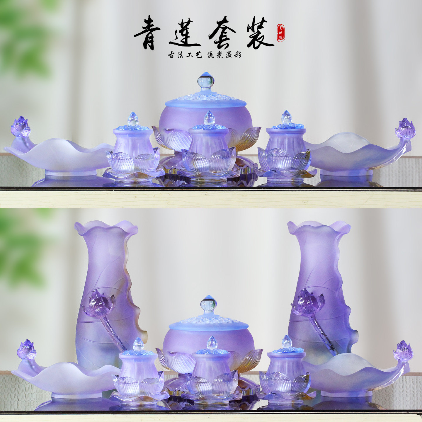 佛堂用品七彩琉璃八吉祥莲花供杯佛前供水杯净水杯圣水杯家用摆件