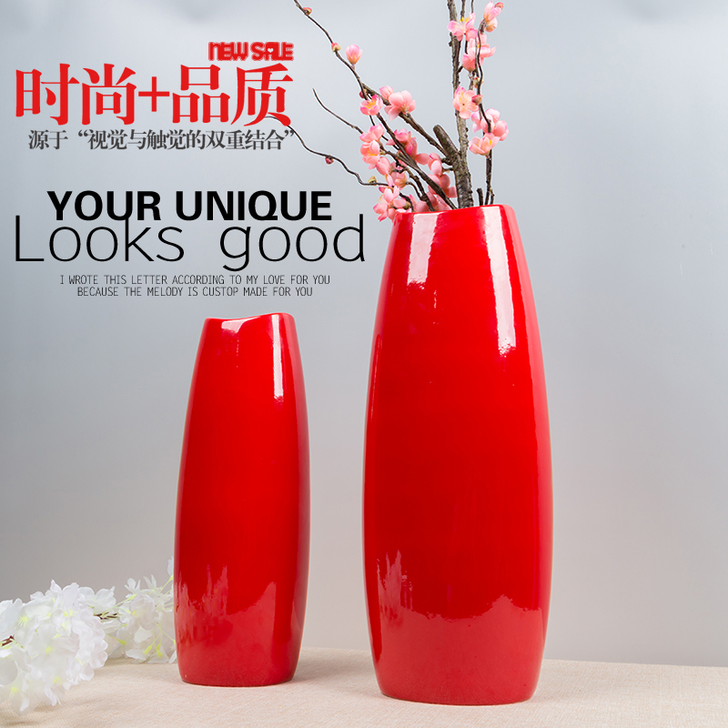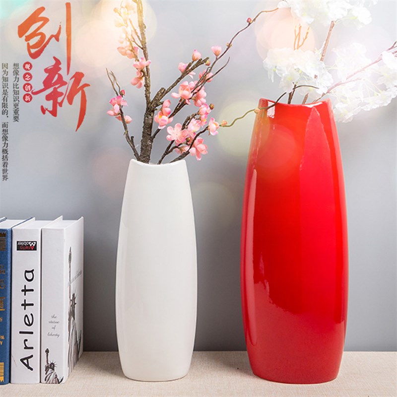 红色陶瓷花瓶 白色落地大花瓶 喜庆新房装修摆设结婚摆件礼物礼品