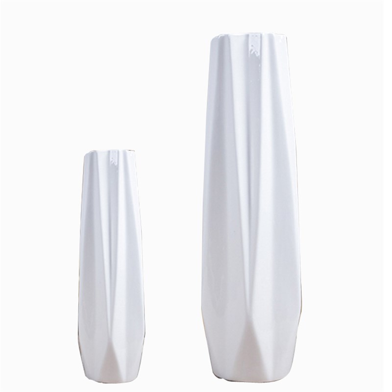 斜纹陶瓷花瓶 白色素雅插花装饰品 简约创意水养鲜花花器现代摆件