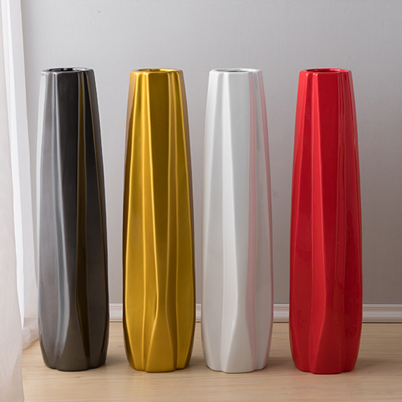 60cm陶瓷花瓶 北欧落地大花瓶 白色红色金色银黑色花器简约可装水