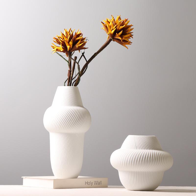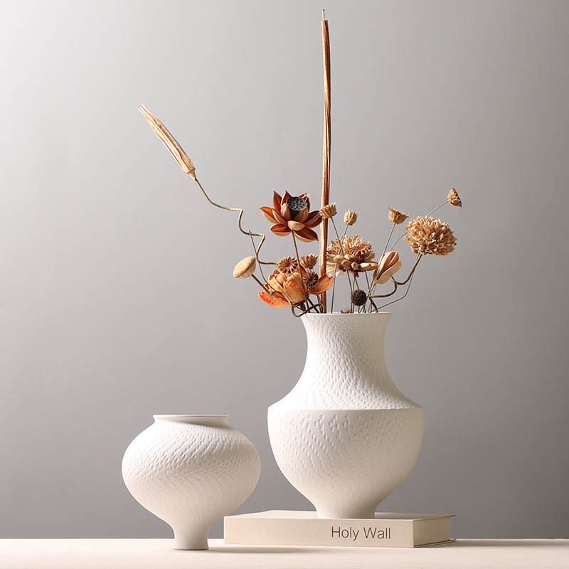 清仓捡漏!白色侘寂风陶瓷花瓶鲜花干花装饰摆件客厅餐桌花器北欧