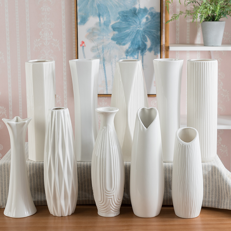 欧式玫瑰插花花瓶白色简约陶瓷花器客厅餐桌干花鲜花水培装饰摆件