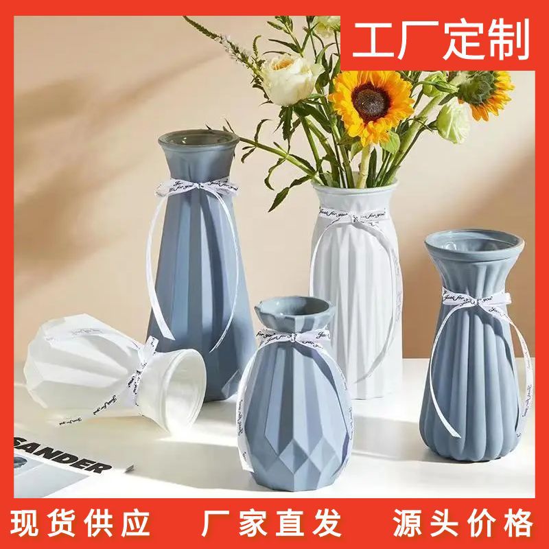 北欧塑料白色小花瓶家居插花花器客厅现代创意简约居家装饰品摆件