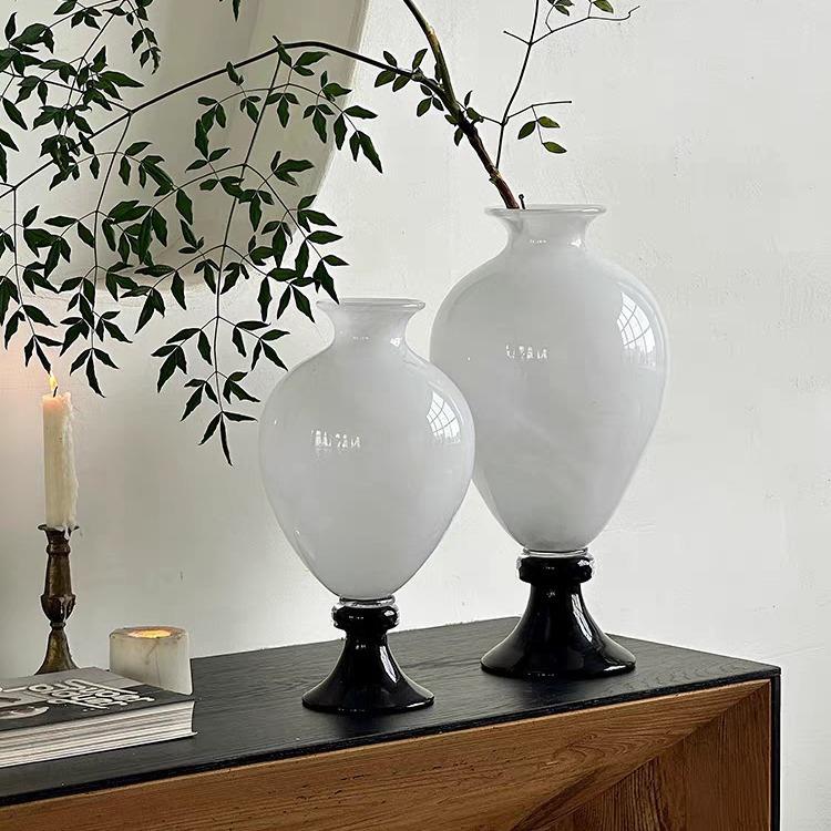 北欧白色餐桌干花黑色花瓶现代家居装饰品客厅玄关插花仿真花摆件