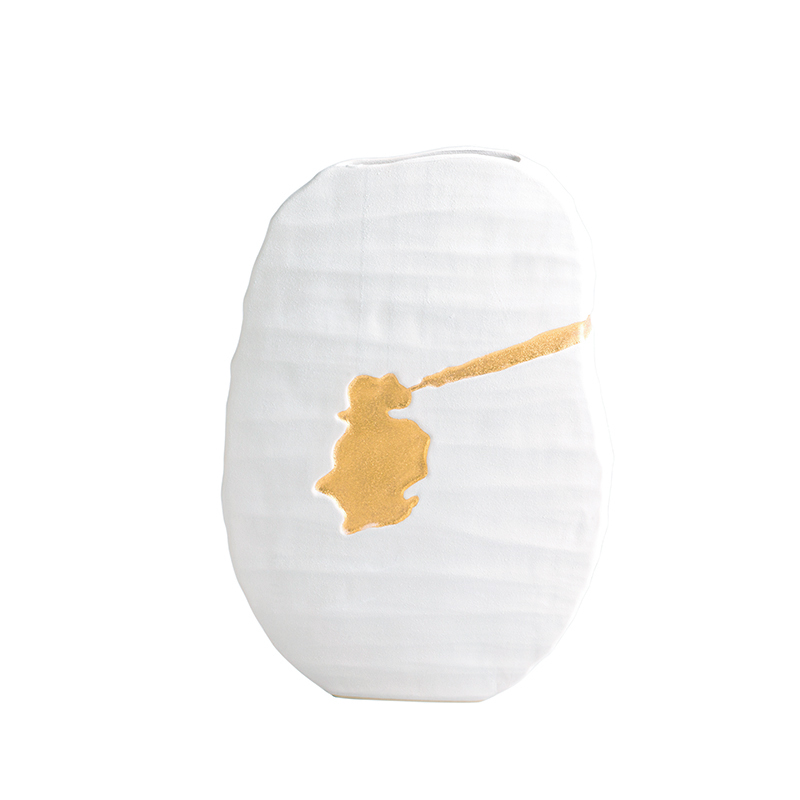 寂器白色陶瓷花瓶轻奢高级感敞口宽口花瓶设计感小众艺术设计师款