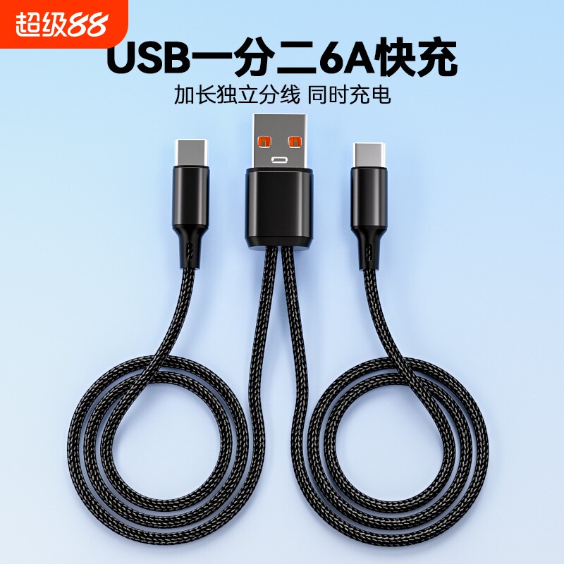 充电线一拖二数据线快充二合一66w超级适用2Typec双华为2个苹果二合一多功能多头双安卓同时充USB车载充电器