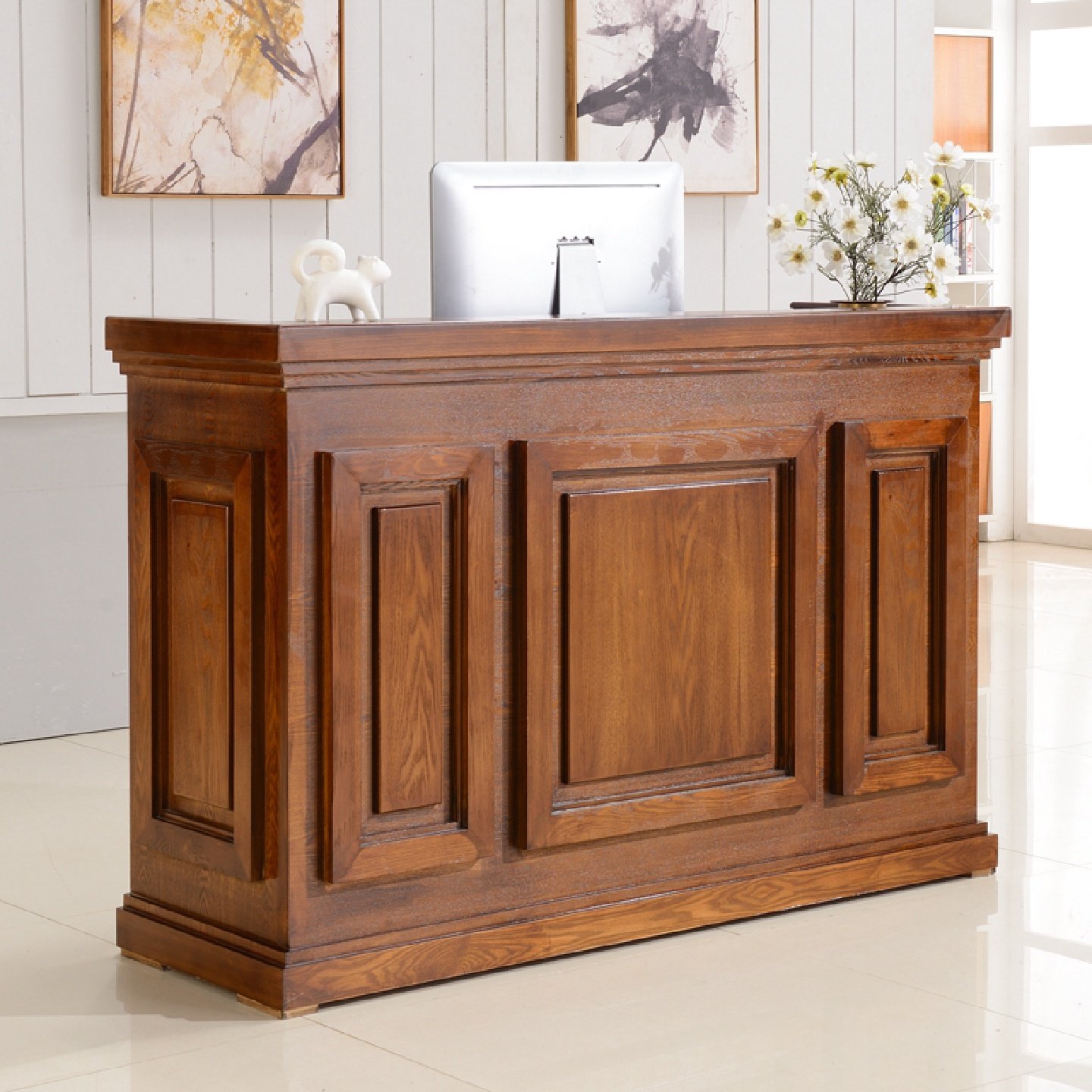 复古收银台吧台桌实木美容院公司前台接待台饭店胡桃色柜台可定制