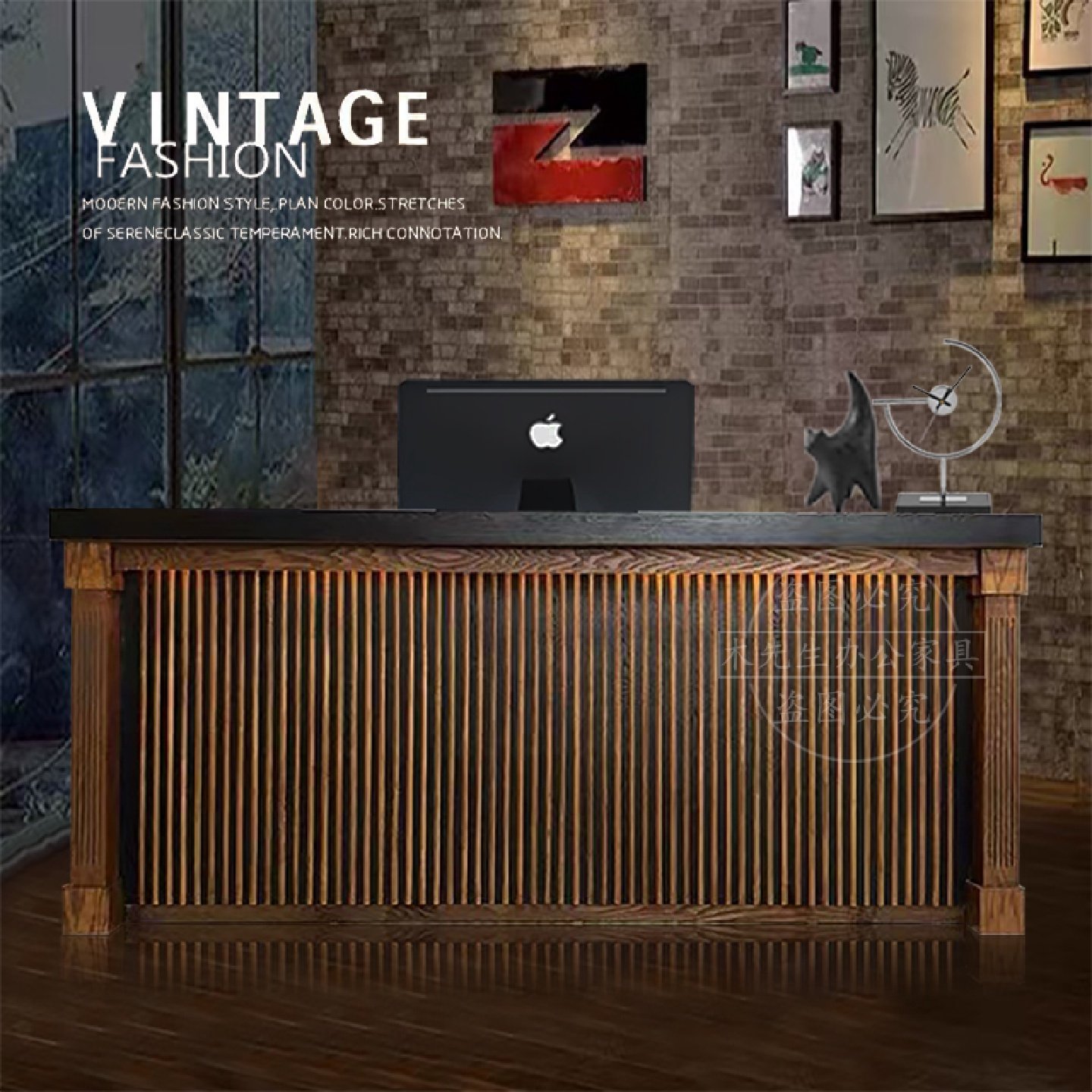 收银台中式复古工业风前台接待台公司会所酒店健身馆服装店接待台