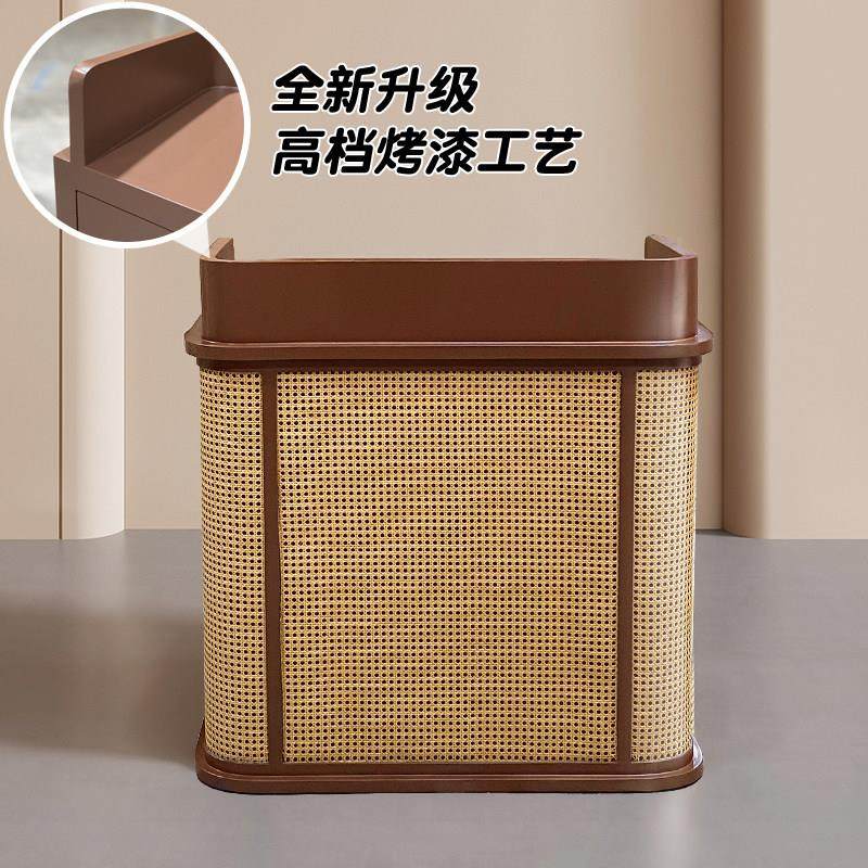 服装店吧台收银台 小型柜轻奢高级感女装店 原木复古风藤编前台桌
