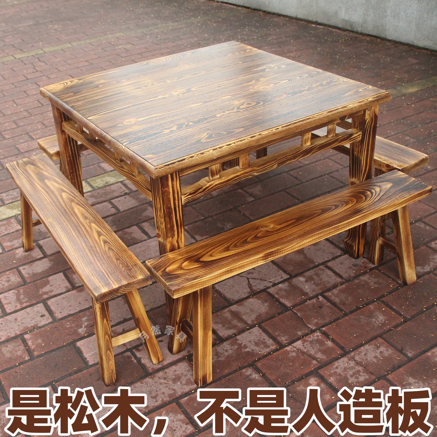 加厚复古炭烧松木方桌饭店餐桌凳子中式古典八仙桌椅实木火锅桌椅