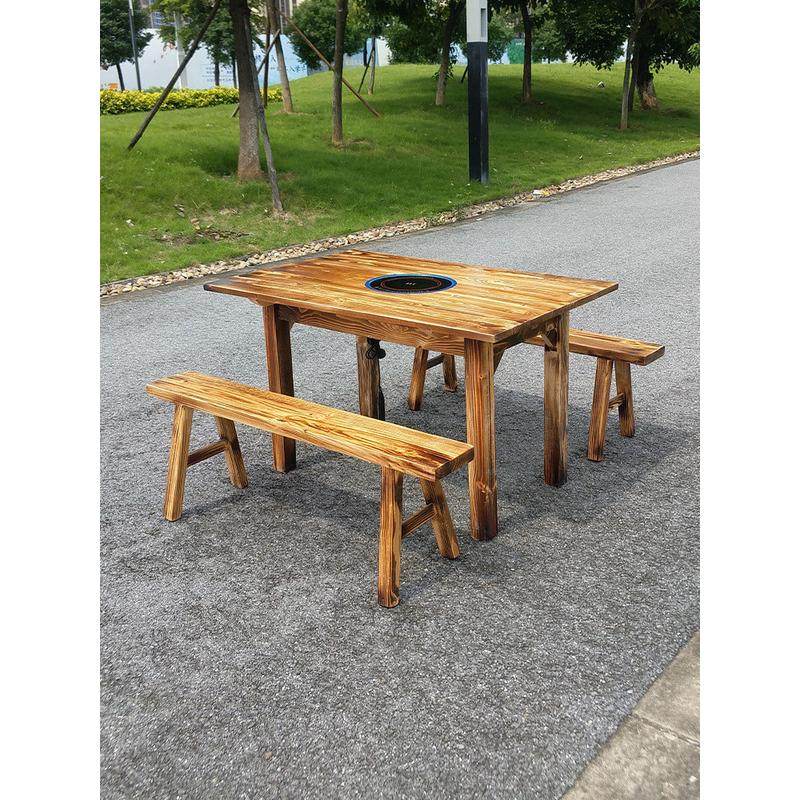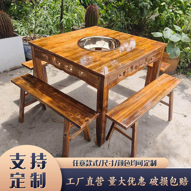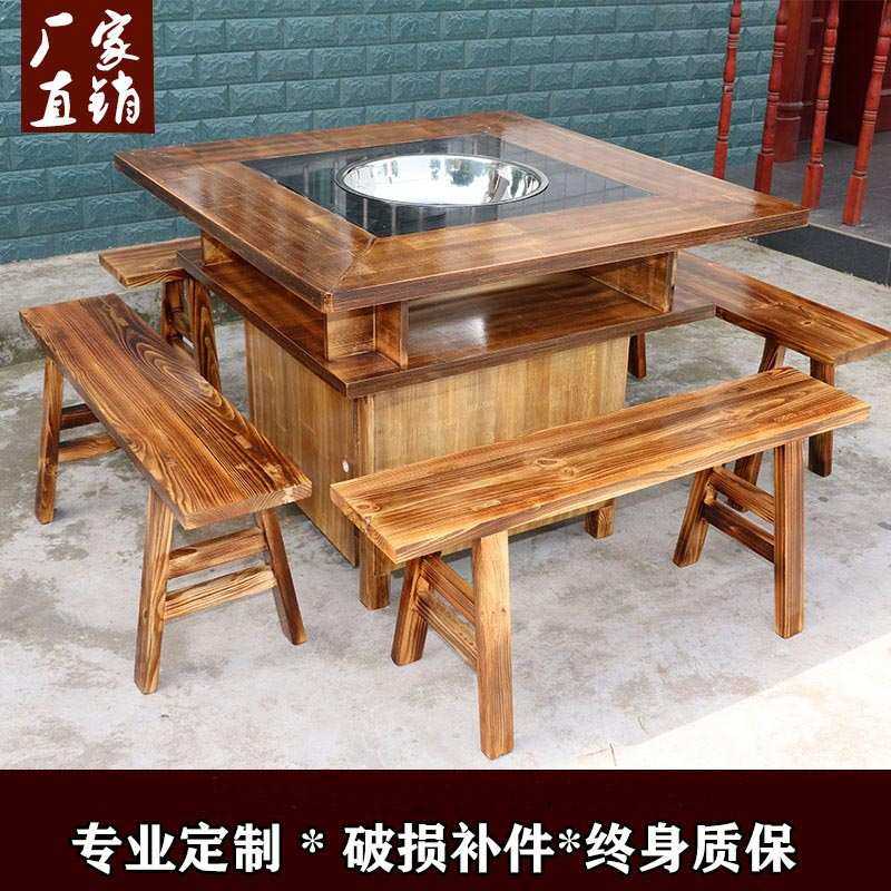 炭炉鸡煲牛杂煲实木火锅桌地摊烧烤桌椅组合长方桌烧木碳火锅店桌