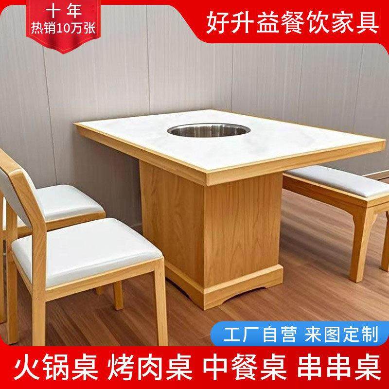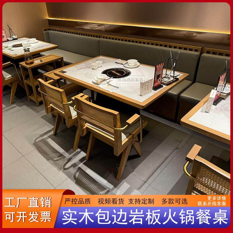 商用实木火锅桌子电磁炉一体无烟烤肉桌岩板餐桌串串香餐饮店桌椅