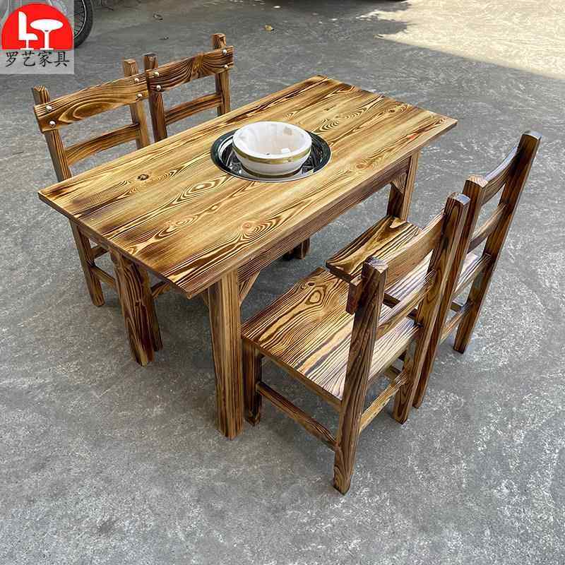 实木碳化饭店桌椅组合餐厅快餐桌椅面馆小吃烧烤火锅店商用餐桌椅