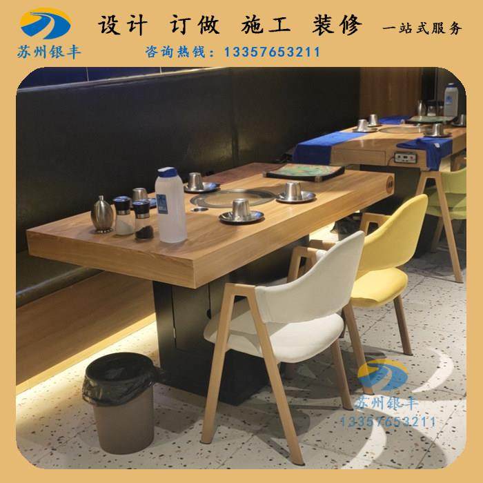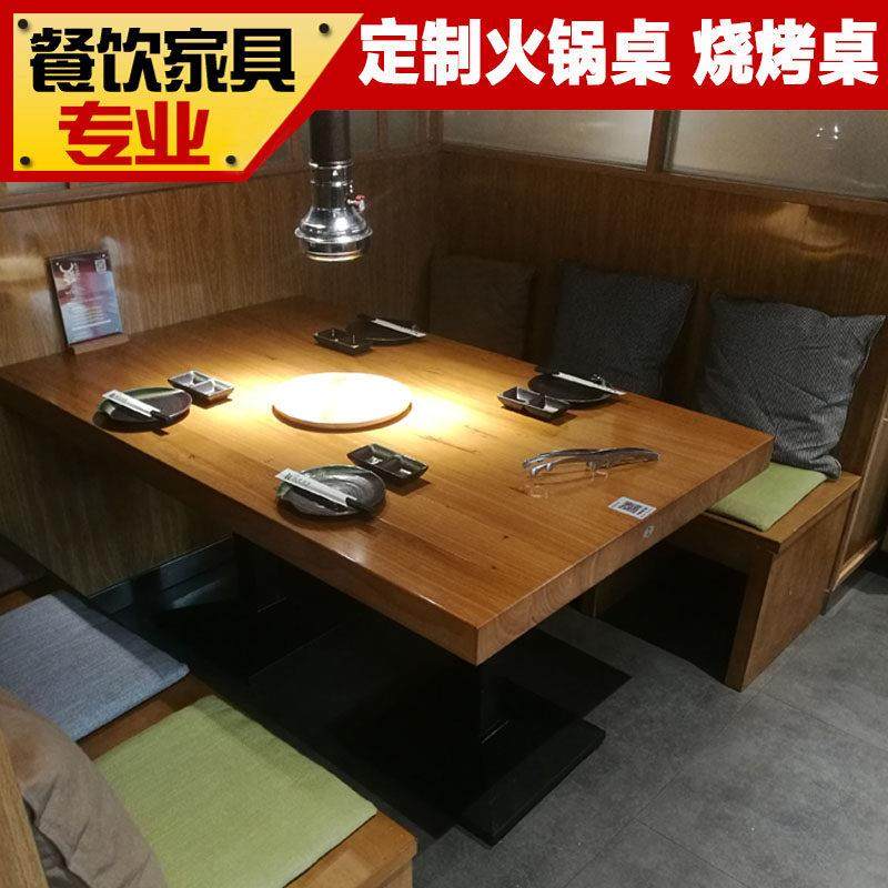 韩国烤肉店桌椅 实木火锅桌涮烤一体桌烧烤店 韩式烤肉桌子商用