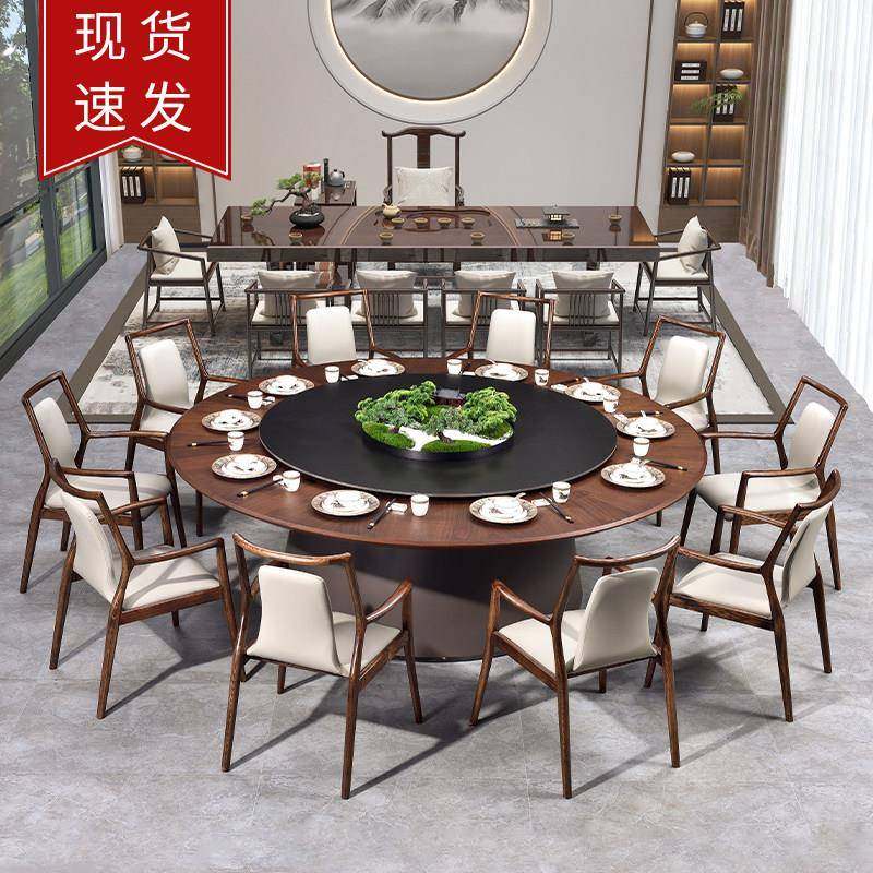 新中式酒店餐桌大圆桌18人餐厅饭店包厢实木火锅桌带电动20人饭桌