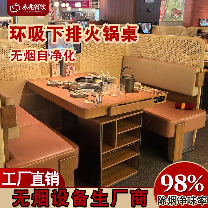 巴奴无烟实木火锅桌电磁炉一体环吸下排烟火锅烤肉店桌椅商用定制