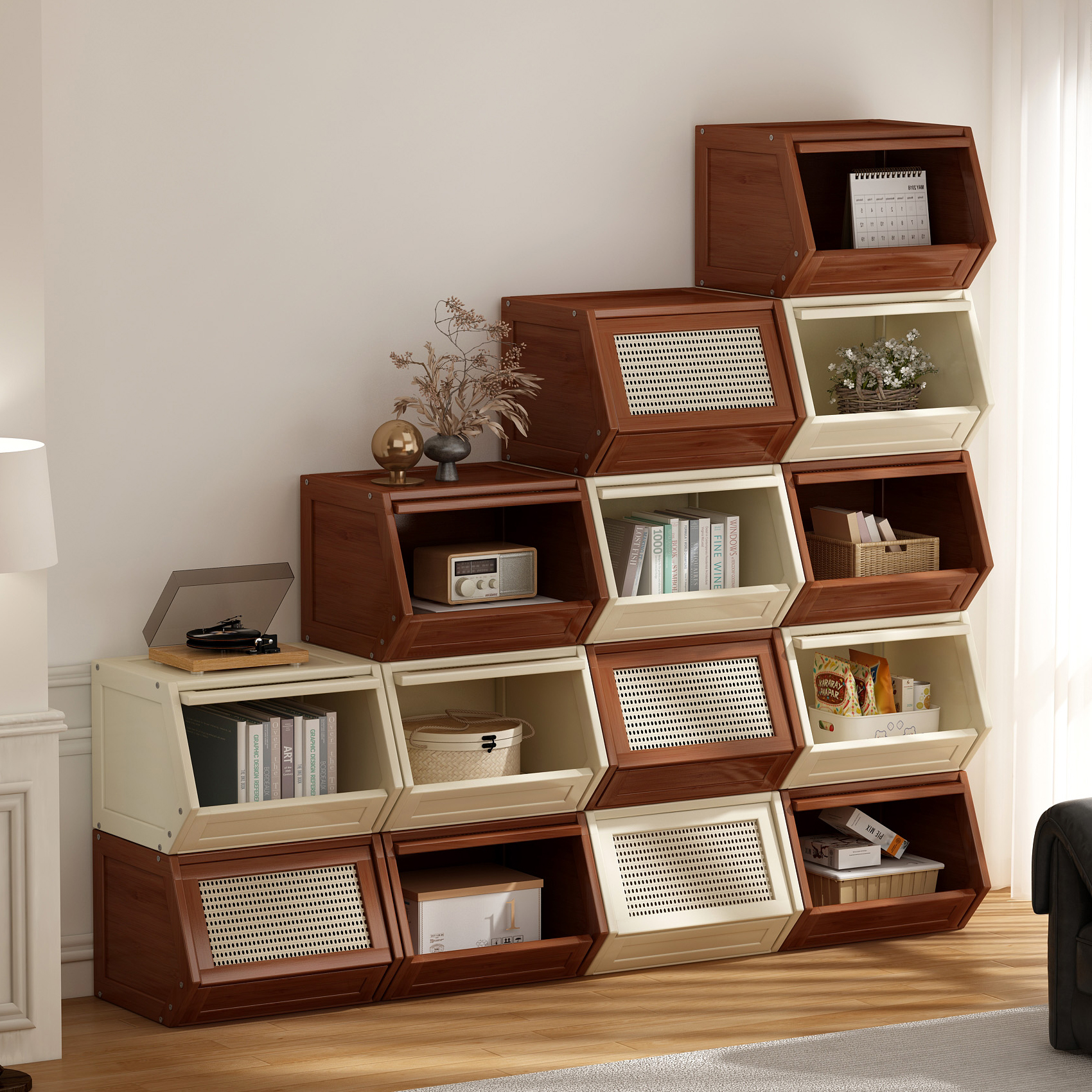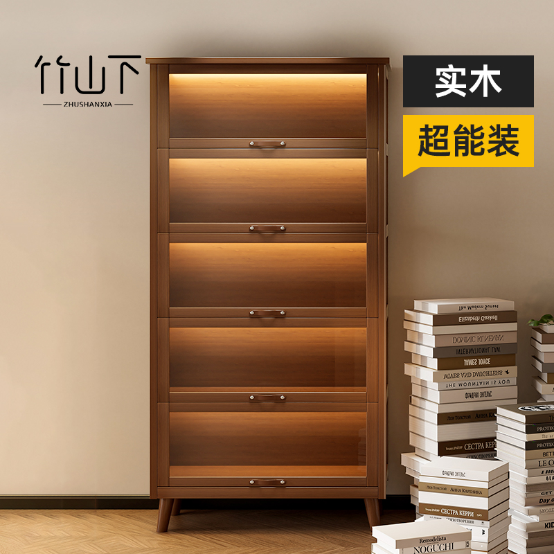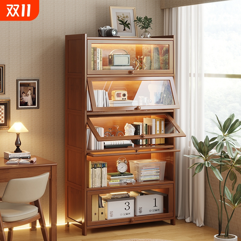 书柜储物柜一体复古落地置物柜书架子客厅储物矮柜防尘卧室靠墙竹
