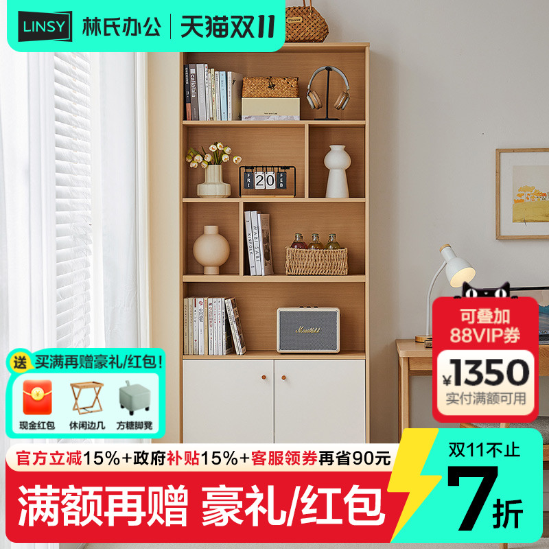 实木书架置物架书柜储物柜一体组合客厅家用收纳落地矮书柜格子柜