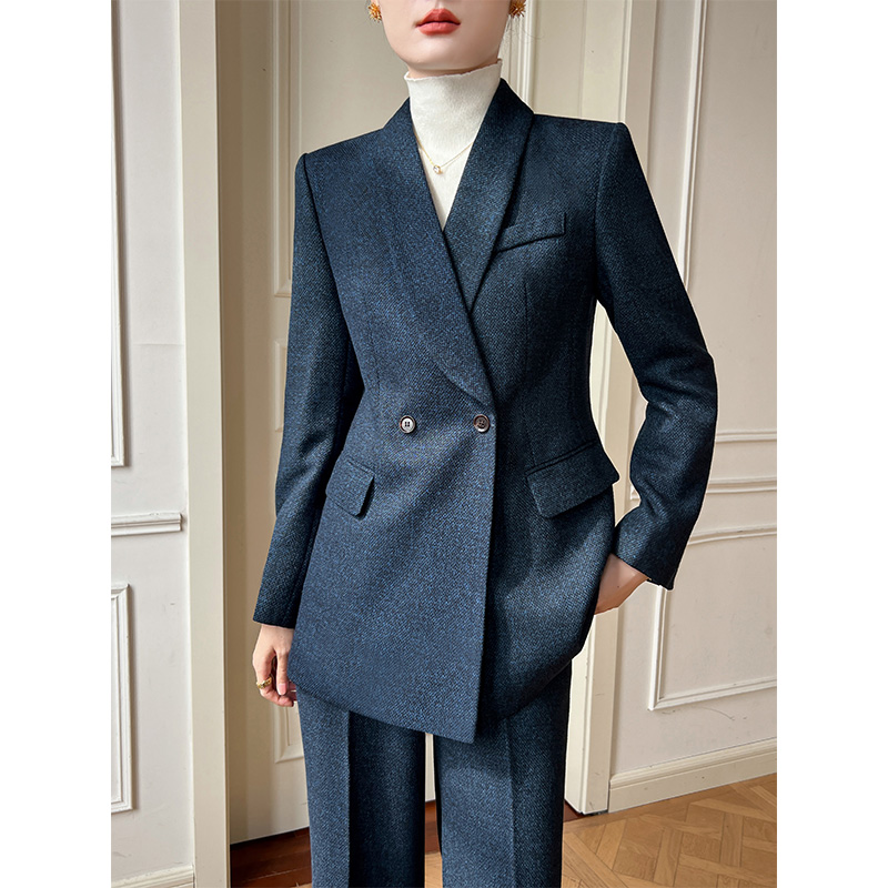 毛呢西装套装女高端定制设计感高级感三件套阔腿裤职业休闲小西服