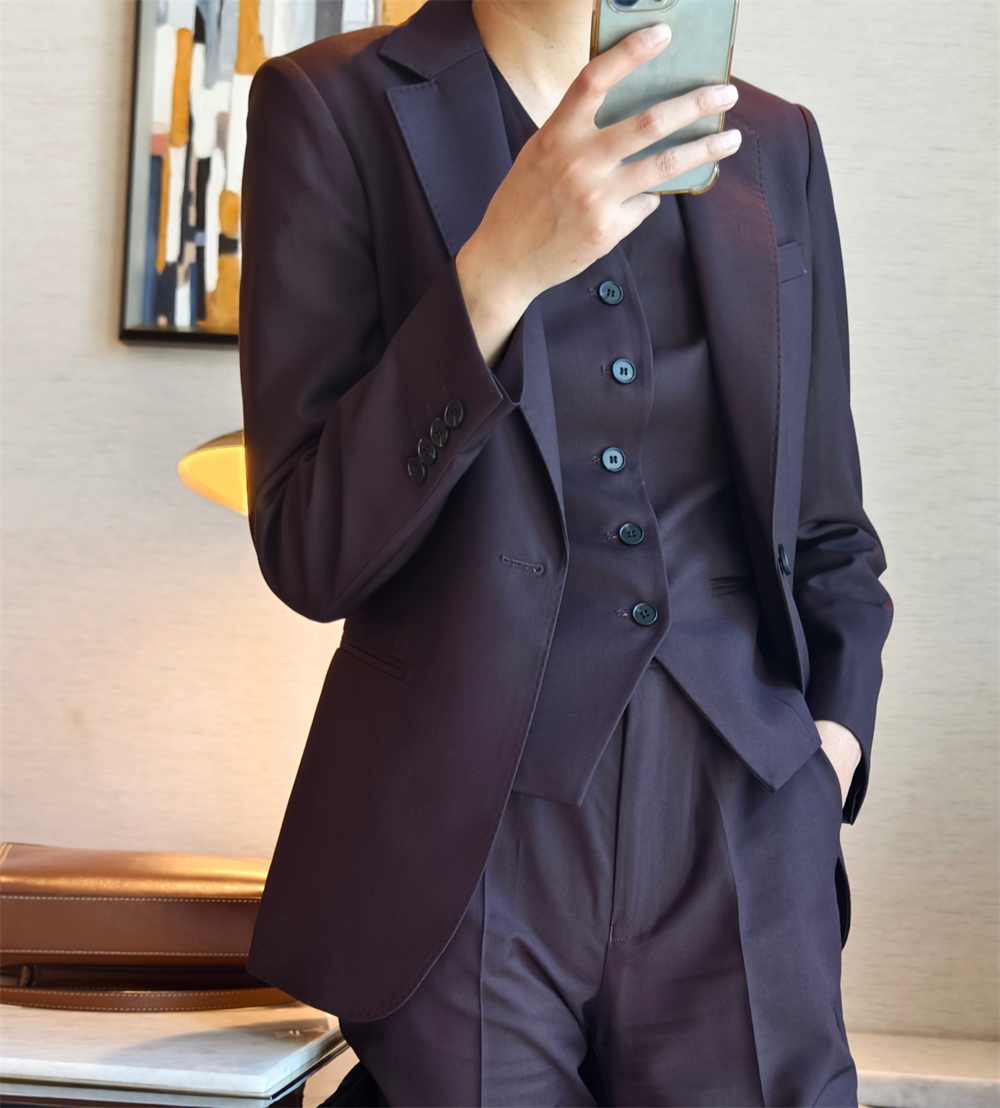 紫红色职业炸街西装套装女士修身休闲英伦风时尚气质女神范三件套