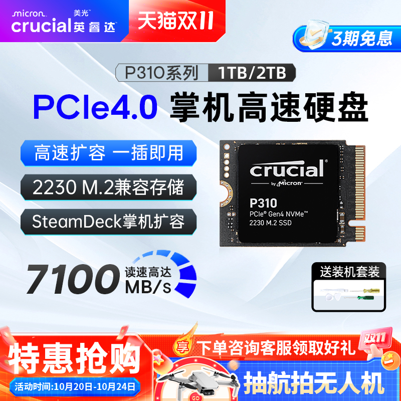 英睿达P310 m2固态硬盘美光1T 2T 电脑SSD台式2230steamdeck游戏