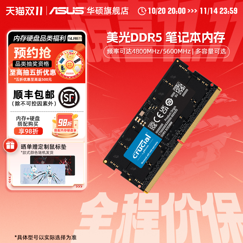 英睿达DDR5笔记本内存条美光 4800/5600MHZ电脑套条