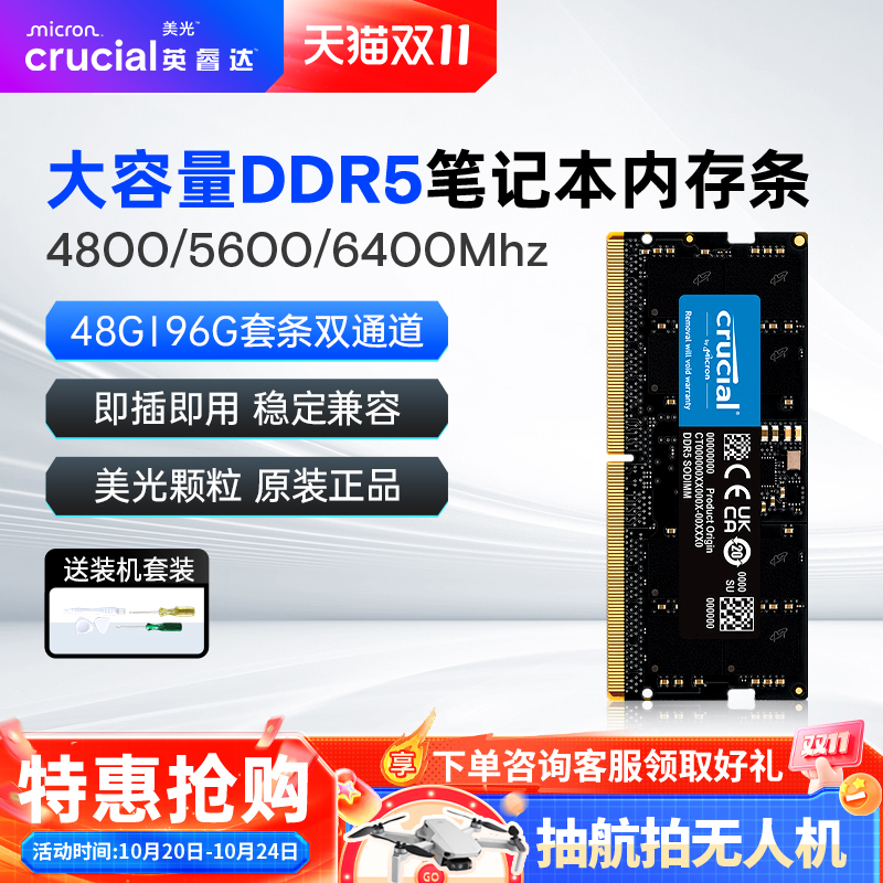 英睿达DDR5笔记本内存条美光16G/24G/32Gx2 6400MHZ套条CKD芯片