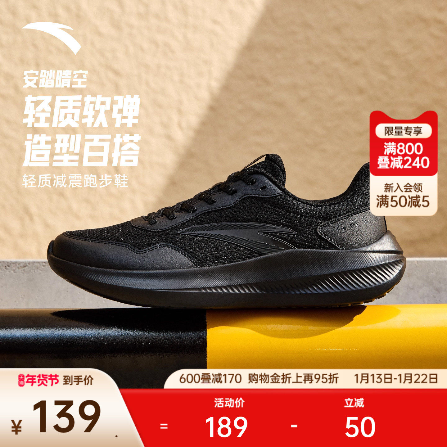 安踏晴空男鞋运动鞋2025冬季新款男士鞋子官方正品黑色休闲跑步鞋
