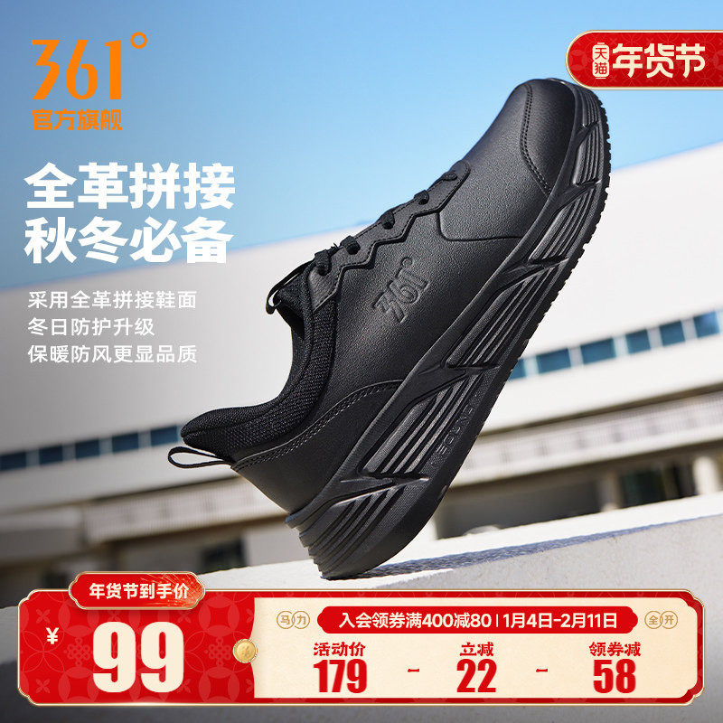 361男鞋运动鞋2025新款秋冬防水轻便跑步鞋男皮面黑色百搭休闲鞋