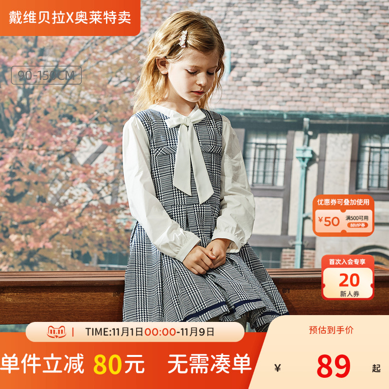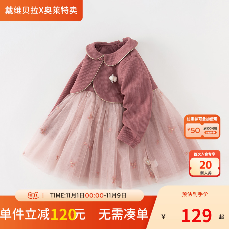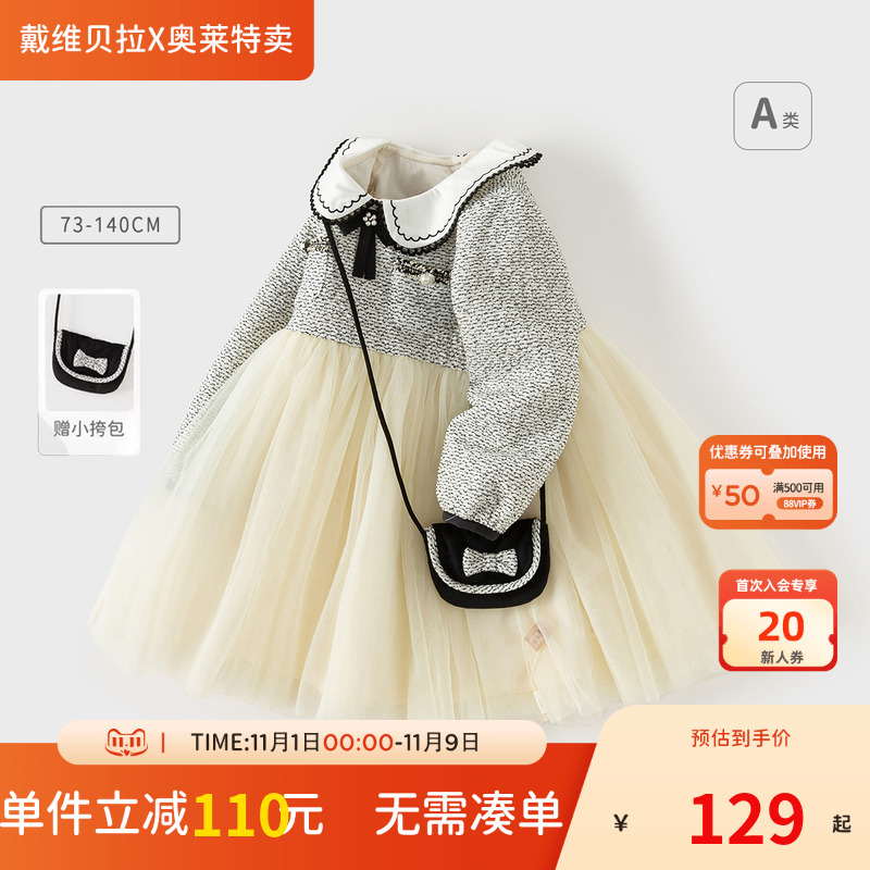 戴维贝拉儿童连衣裙秋装女童气质小香风裙子女宝宝洋气公主裙童装