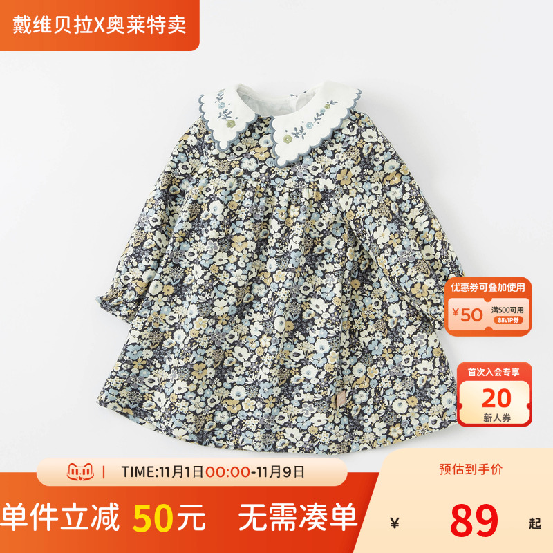 【清仓特价】戴维贝拉女童连衣裙秋装儿童洋气裙子小童宝宝碎花裙