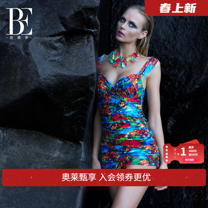 BE范德安泳衣女连体三角泳衣遮肚显瘦抗氯防晒小胸聚拢时尚泳装
