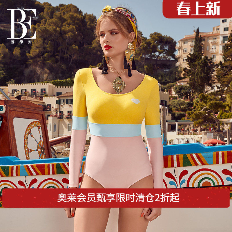 BE范德安泳衣女款长袖防晒遮肚显瘦速干泡温泉度假时尚连体游泳衣