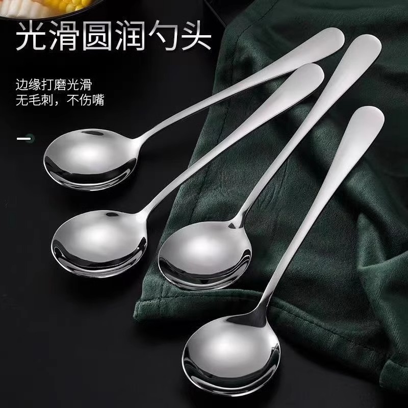 不锈钢勺子成人喝汤勺加厚长柄家用厨房调味喝粥勺大号盛汤大头勺