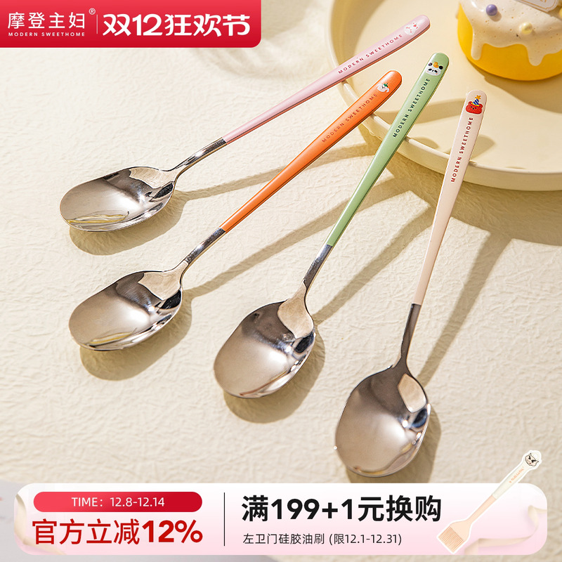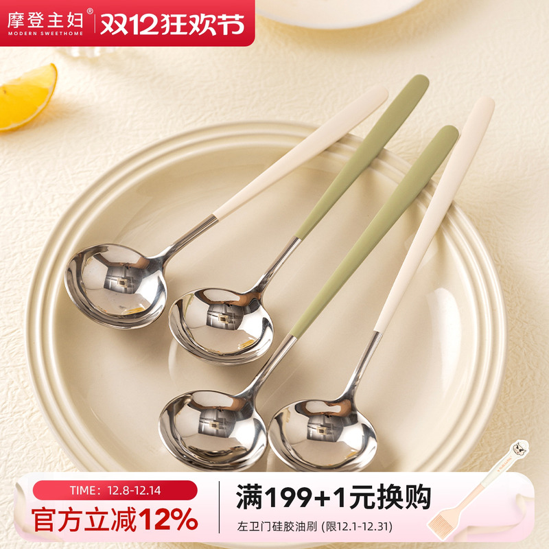 摩登主妇316不锈钢勺子食品级家用高档精致长柄小汤勺个人专用勺
