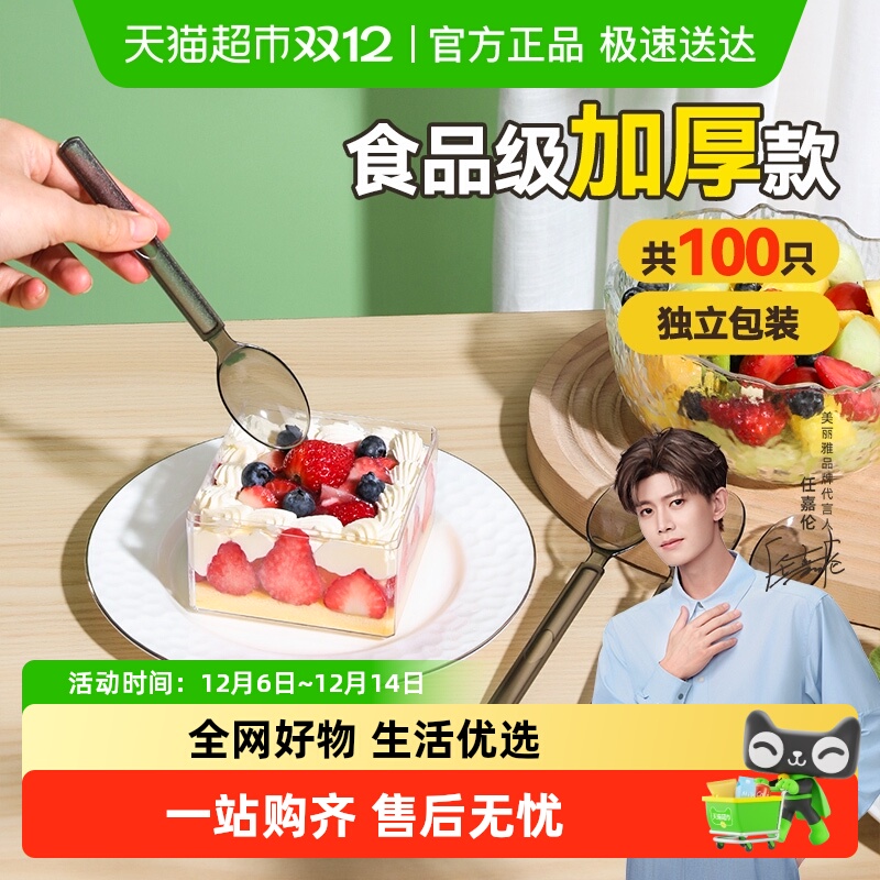 美丽雅一次性勺子加厚餐勺食品级汤勺调羹耐高温外卖西瓜冰淇淋勺