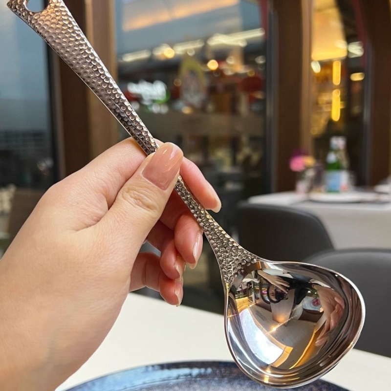 日式304锤纹分菜勺勺子高颜值家用高档精致不锈钢 分菜公勺汤勺