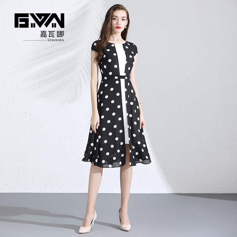 波点雪纺连衣裙女中长裙夏季新款短袖收腰显瘦气质小清新a字裙子