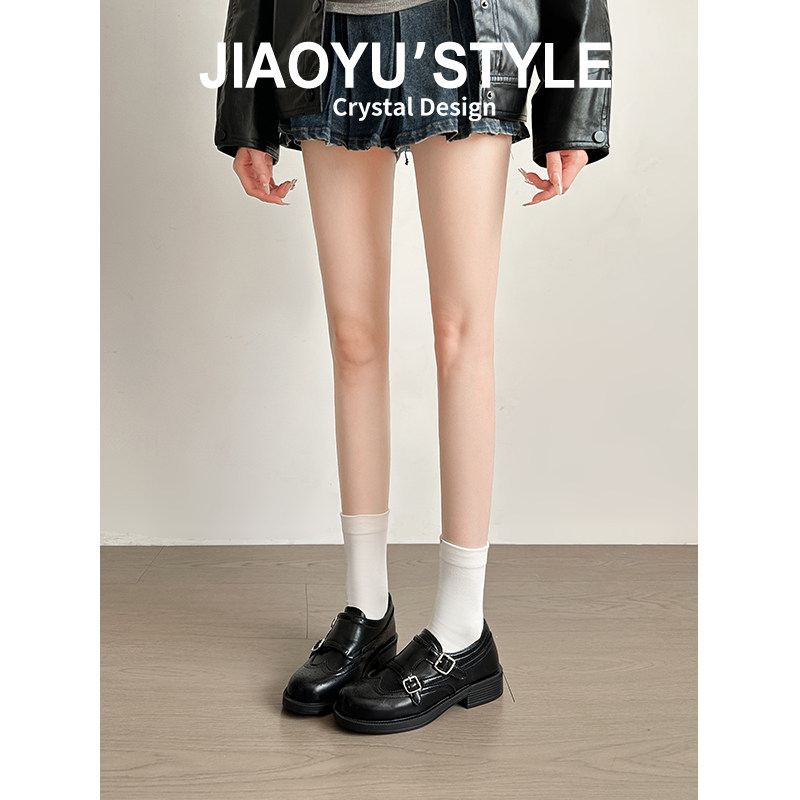 真皮~骄屿英伦皮带扣雕花布洛克小皮鞋女黑色单鞋复古通勤乐福鞋