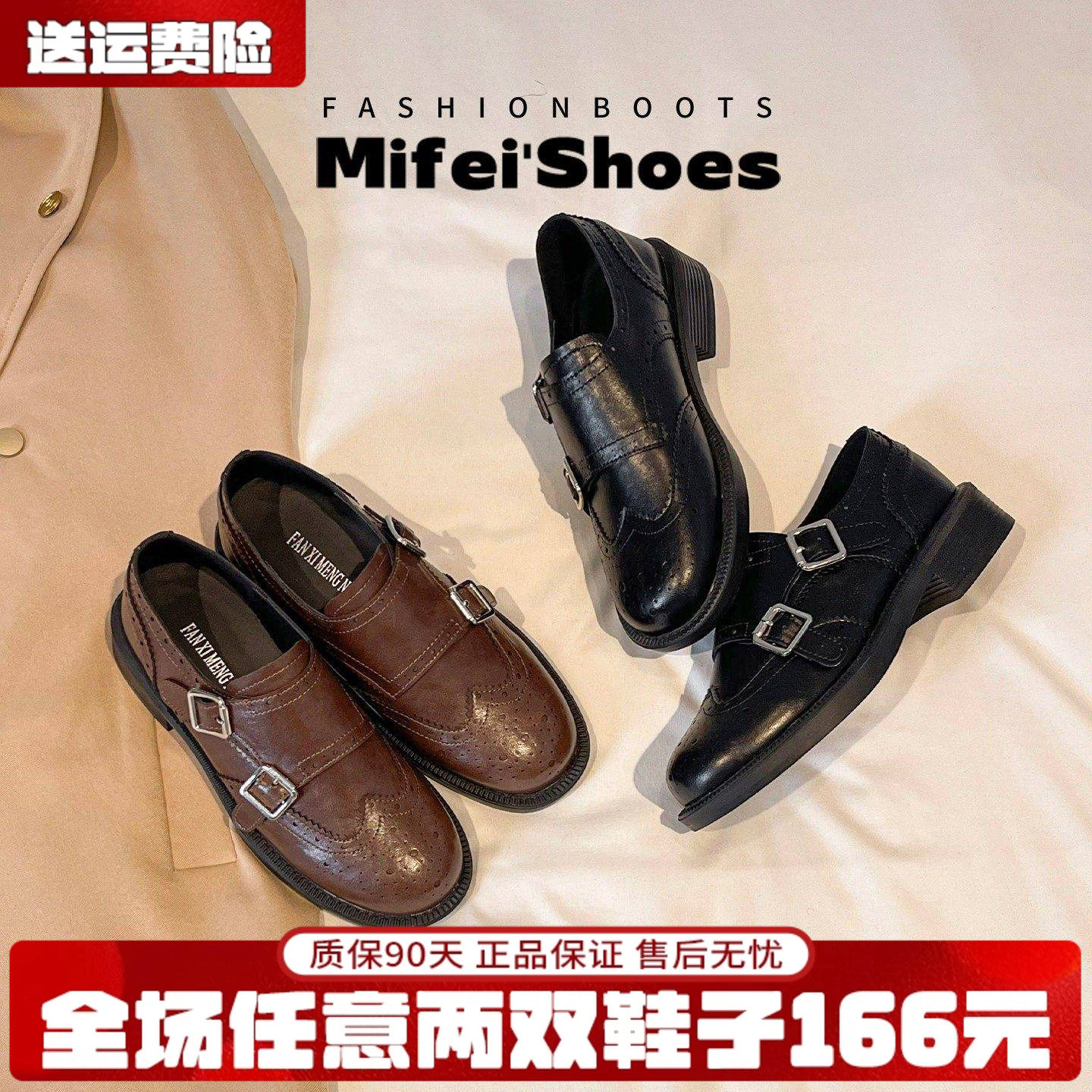 小羊轻奢英伦风厚底小皮鞋女雕花布洛克德比鞋双搭扣真皮孟克单鞋