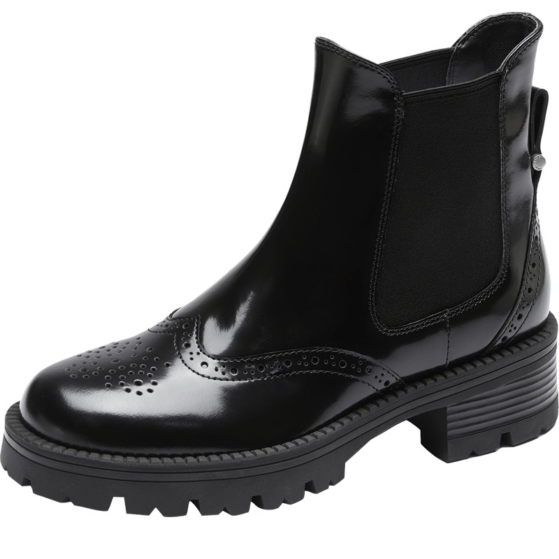 莱尔斯丹时光烙印新款复古真皮布洛克厚底切尔西短靴子女鞋50708