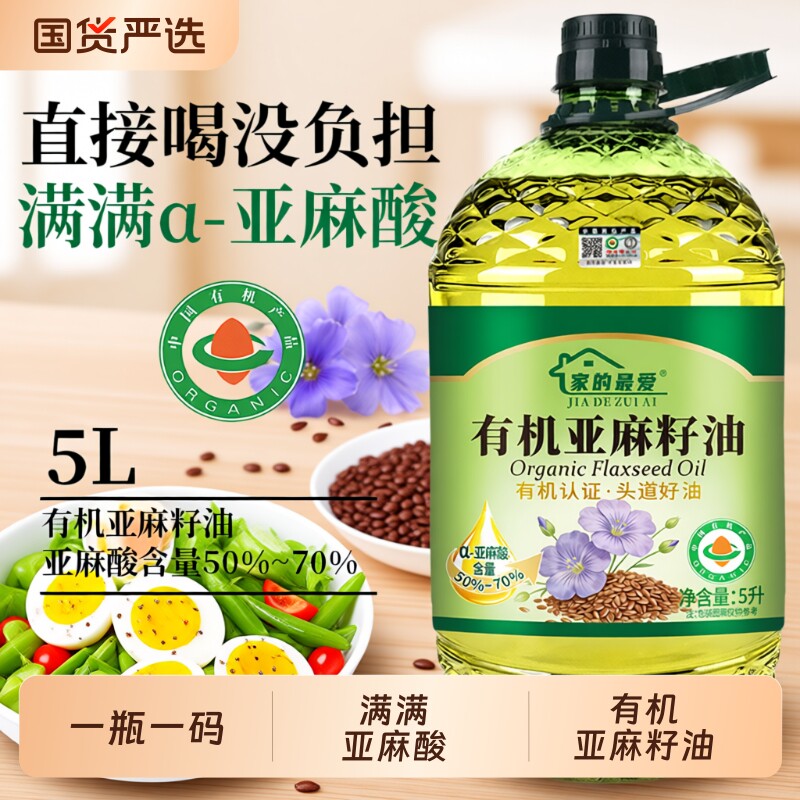 有机亚麻籽油一级冷榨食用油认证压榨纯正5升炒菜正品直接喝物理