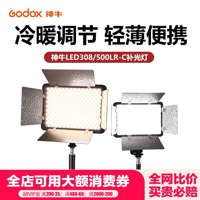 godox神牛308IIBi/W二代升级版带反光板LED摄像灯直播补光灯婚庆灯户外新闻采访补光LED500LR平板灯